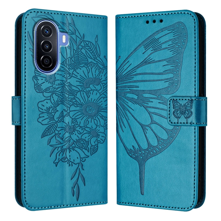 Funda de Cuero para Huawei Enjoy 50 4G y Nova Y70 Plus con Mariposa en Relieve (Azul)