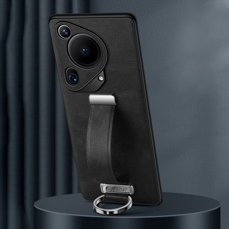 Funda de Teléfono Sulada TPU y Cuero Hecho a Mano para Huawei Pura 70 (Negro)