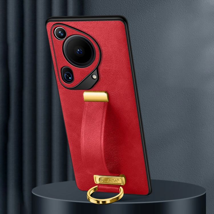 Funda para Huawei Pura 70 Sulada TPU a Prueba de Golpes y Cuero Hecha a Mano (Rojo)