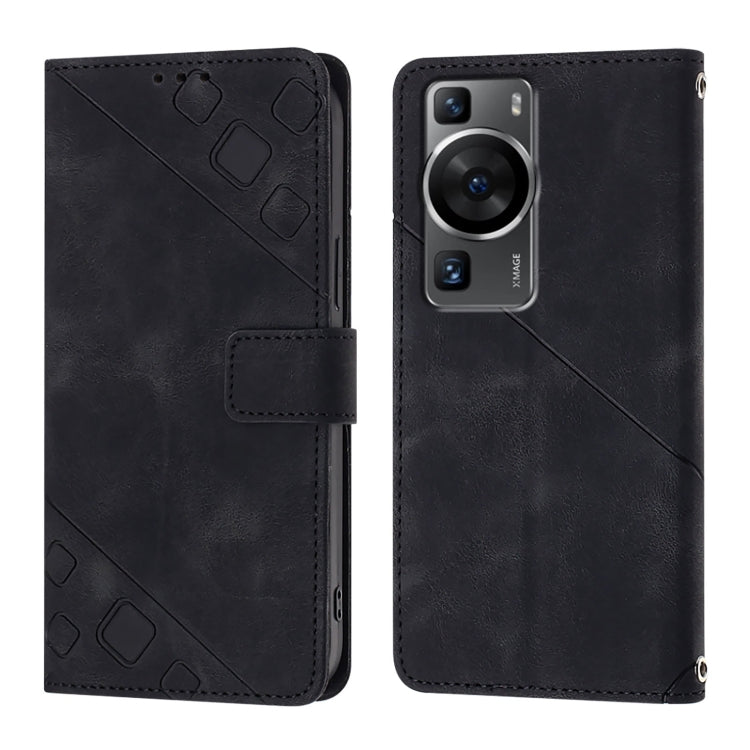Funda de Cuero Skin Feel para Huawei P60 y P60 Pro en Relieve (Negro)