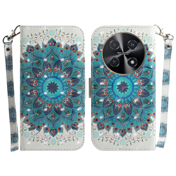Funda de Cuero para Huawei Nova 12I 4G Global con Tapa Horizontal 3D (Corona de Pavo Real)