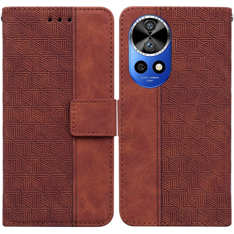 Funda de Cuero para Huawei Nova 12 Pro con Relieve Geométrico (Marrón)
