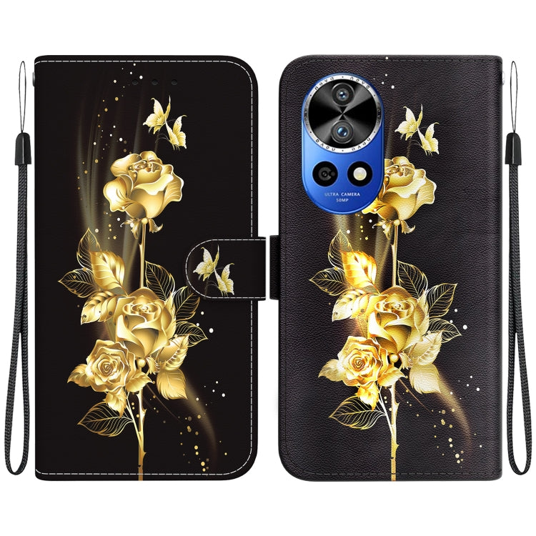 Funda de Cuero para Huawei Nova 12 Ultra con Dibujo Coloreado Crystal Texture (Peonía Dorada)