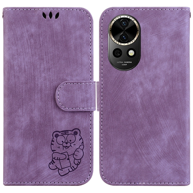Funda de Cuero para Huawei Nova 12 con Relieve Little Tiger (Púrpura)