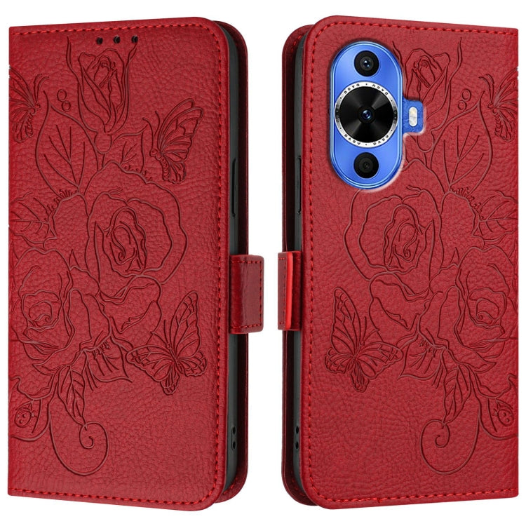 Funda de Cuero Huawei Nova 12 Pro y Nova 12 Ultra Butterfly Rose En Relieve (Verde)