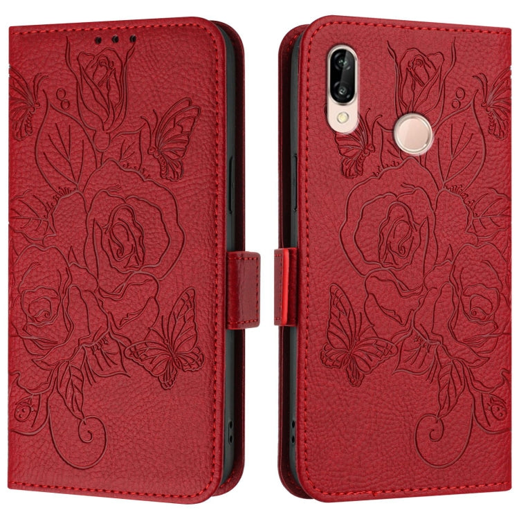 Funda de Cuero Antirrobo con RFID para Huawei P20 Lite / Nova 3E en Relieve (Rojo)