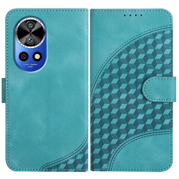 Funda de Cuero Huawei Nova Y72 con Relieve de Cabeza de Elefante y Cordón (Azul Real)