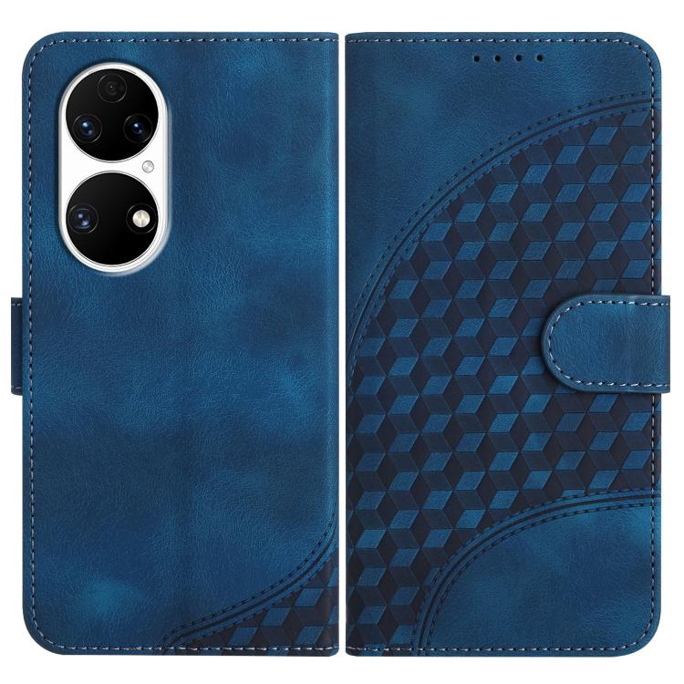 Funda de Cuero Huawei P50 Pro con Relieve de Cabeza de Elefante y Cordón (Azul Real)