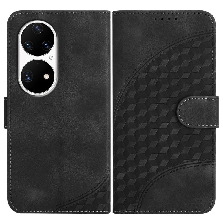 Funda de Cuero Huawei P50 Pro con Relieve Cabeza de Elefante y Cordón (Negro)