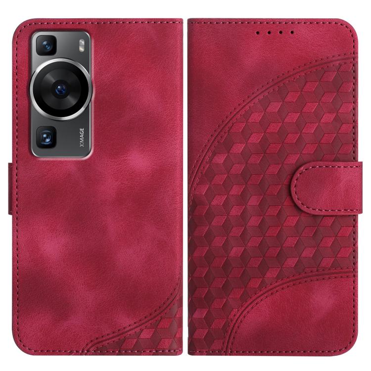 Funda de Cuero con Relieve de Cabeza de Elefante para Huawei P60 y P60 Pro con Cordón (Rosa Rojo)