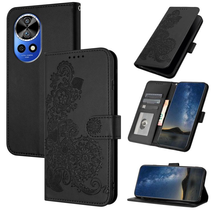 Funda de Cuero con Tapa y Relieve Flor de Datura para Huawei Nova 12 Pro y Nova 12 Ultra (Negra)
