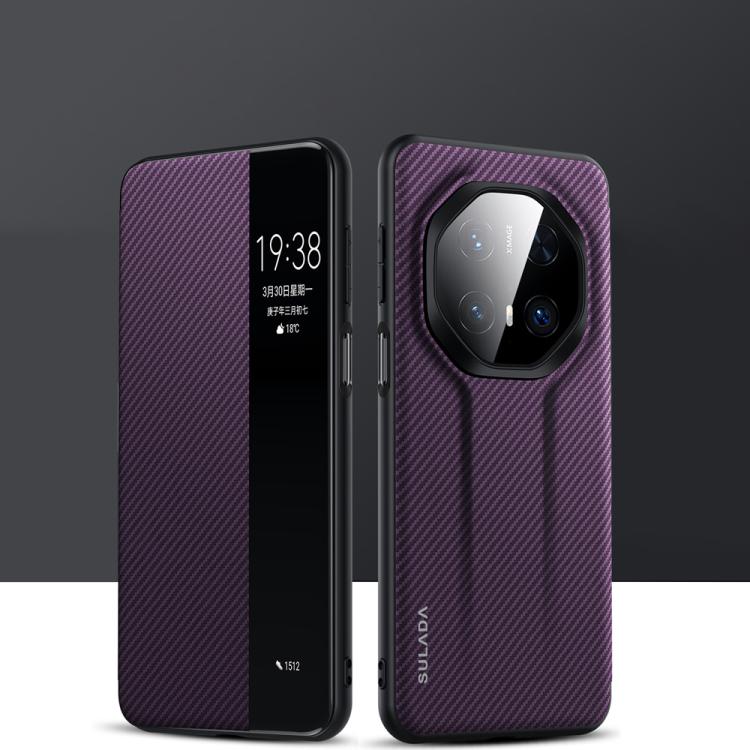 Funda de Cuero con Ventana Inteligente y Textura Kevlar 600D para Huawei Mate 70 Rs Ultimate (Morado)
