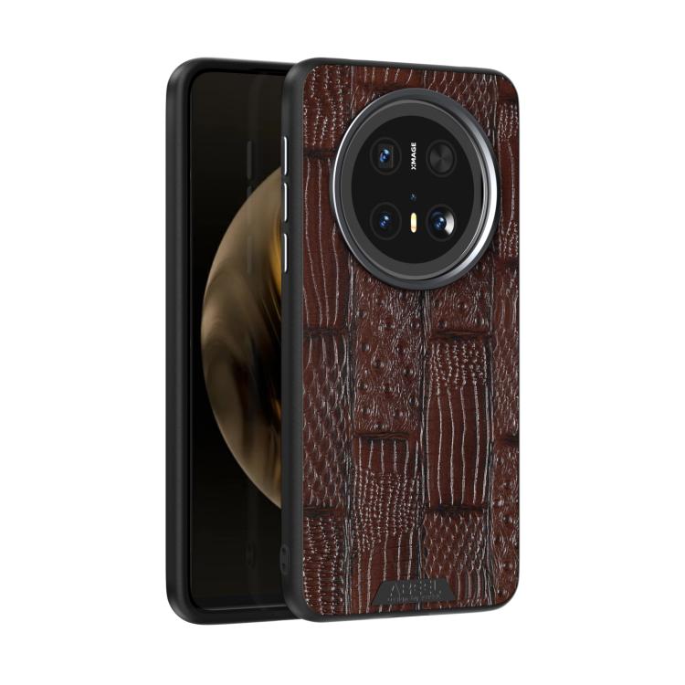 Funda de Piel Auténtica Magsafe con Micrograbado 6D Abeel Beast Pattern para Huawei Mate 70 (Marrón)