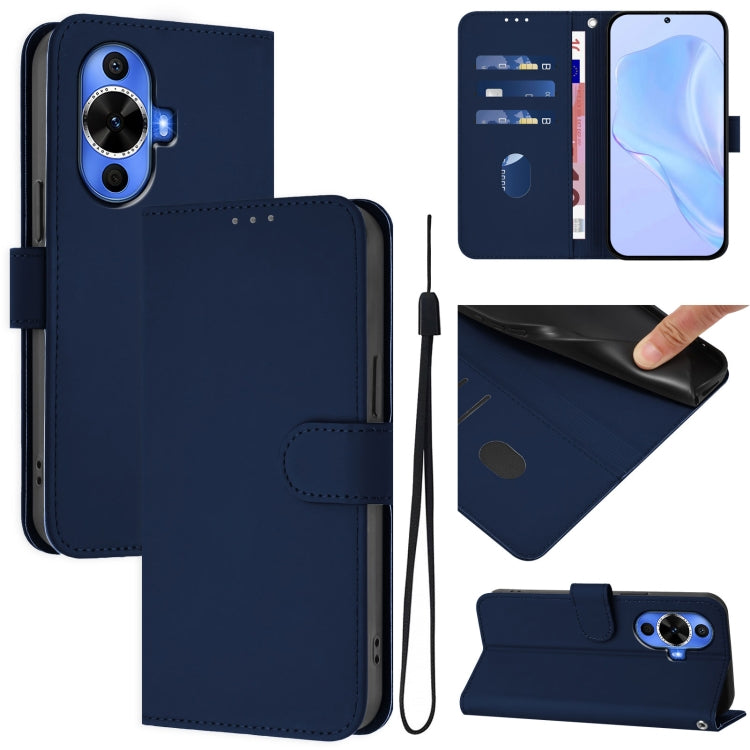 Funda de Piel para Huawei Nova 12S 4G con Textura Liso y Cordón (Azul Marino)
