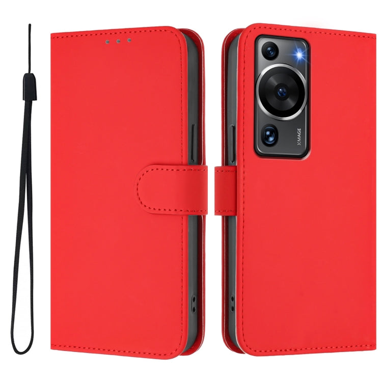 Funda de Cuero con Cordón para Huawei Pura 70 Pro y 70 Pro+ Textura Piel (Rojo)