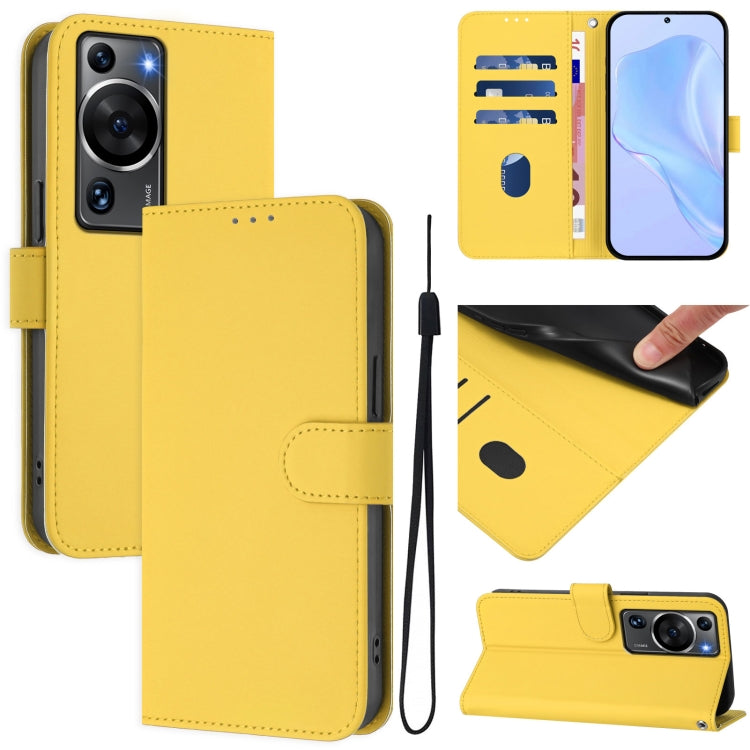 Funda de Piel Sintética con Cordón para Huawei P60/P60 Pro (Amarillo Limón)