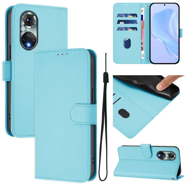 Funda de Piel para Huawei Nova 9 con Textura Lisa y Cordón (Azul Cielo)