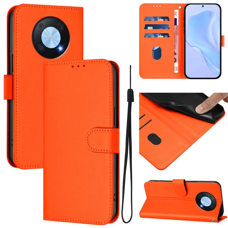 Funda de Piel con Cordón para Huawei Nova 12I 4G con Acabado Liso (Naranja)