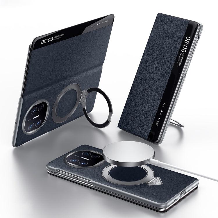 Funda de Cuero con Soporte Magnético Magsafe y Ventana Smart View para Huawei Mate X5/X3 (Azul)