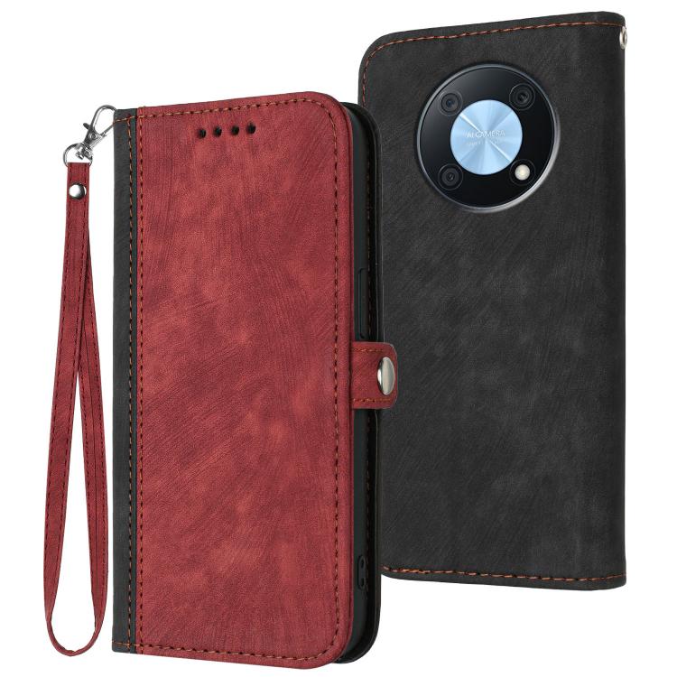 Funda de Cuero con Correa de Mano y Hebilla Lateral Doble para Huawei Enjoy 50 Pro/Nova Y90 (Rojo)