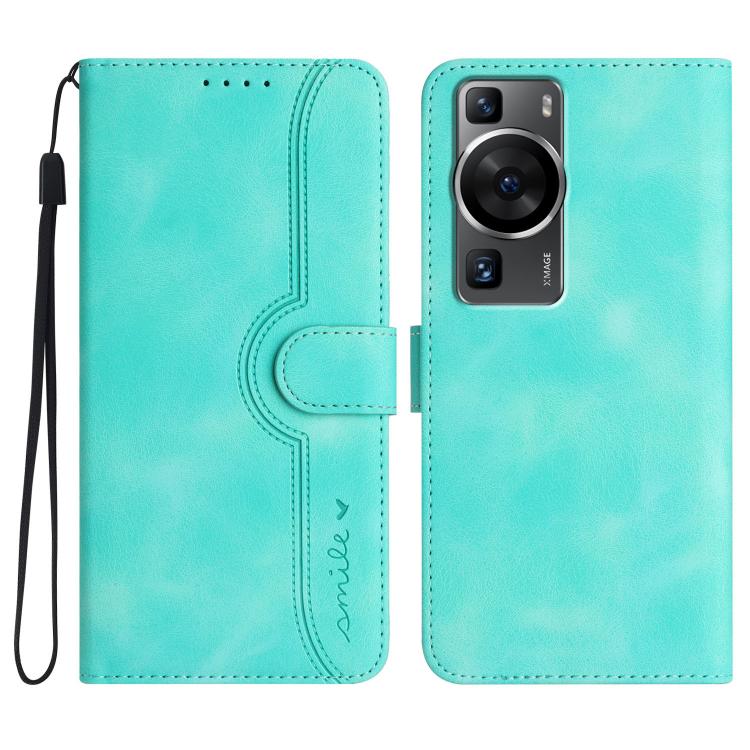 Funda de Piel Sintética para Huawei P60 y P60 Pro con Diseño de Corazón (Azul Claro)
