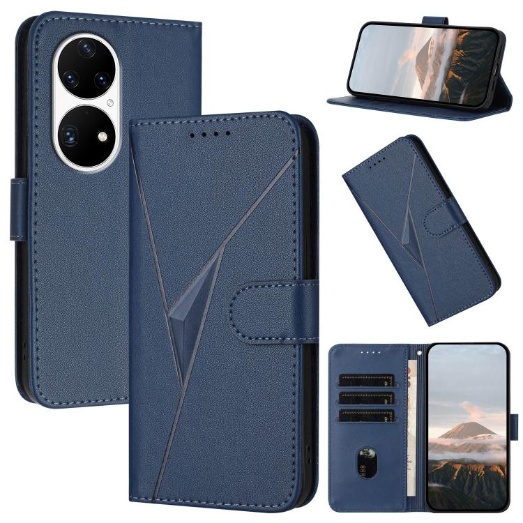 Funda de Cuero para Huawei P50 con Cierre de Hebilla y Diseño Triangular (Azul Real)