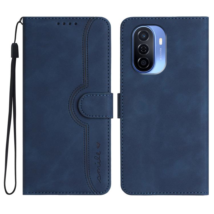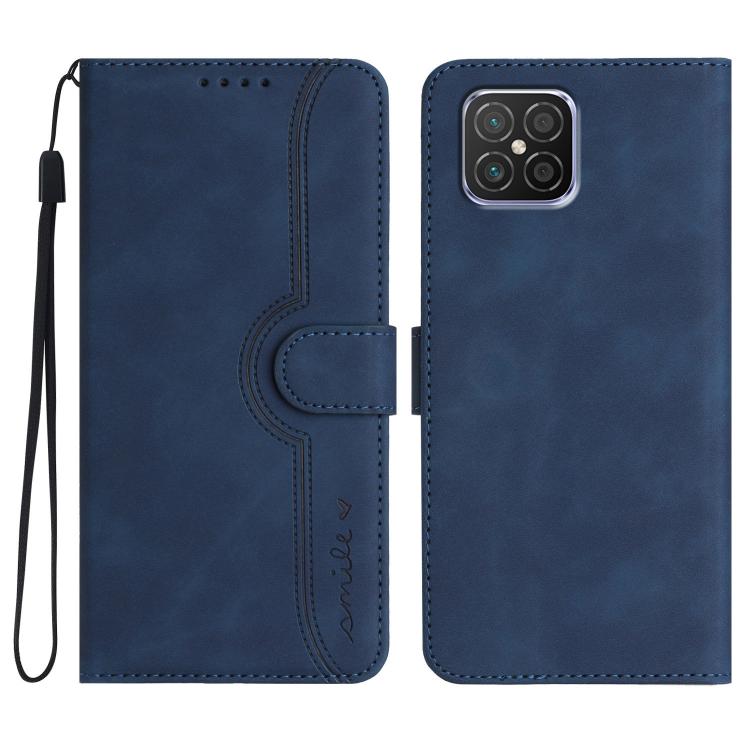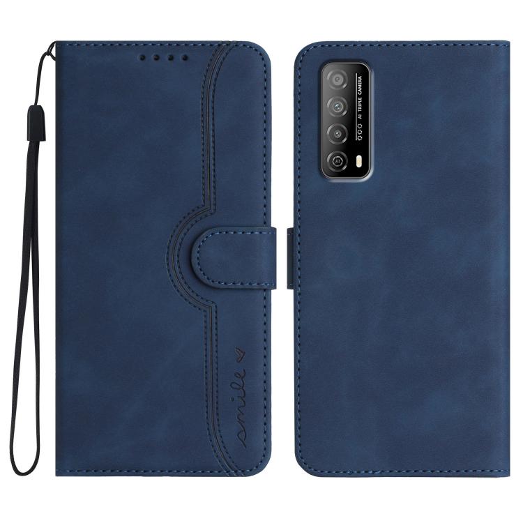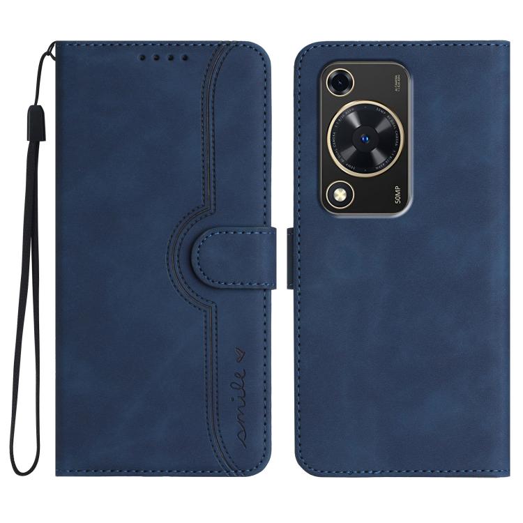 Funda de Cuero con Diseño de Corazón para Huawei Enjoy 50 y Nova Y70 (Azul Real)