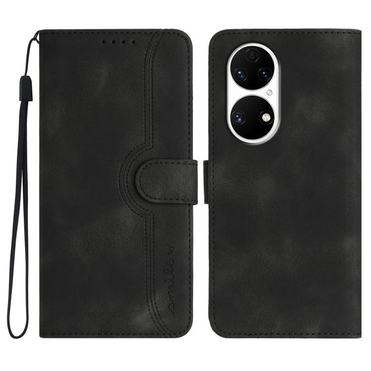 Funda de Piel Sintética con Diseño de Corazón para Huawei P50 (Negra)