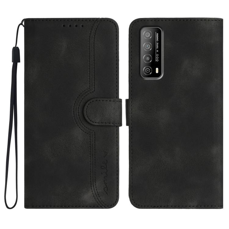 Funda de Piel para Huawei Enjoy 20 Se 4G con Diseño de Corazón (Negra)