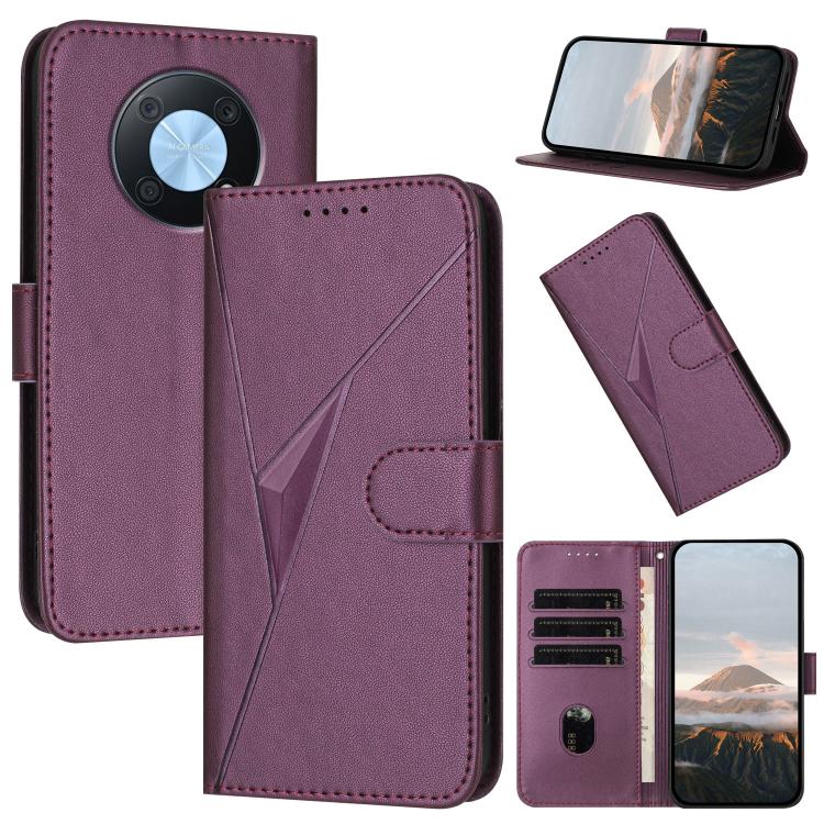 Funda de Cuero con Cierre de Hebilla y Diseño Triangular para Huawei Enjoy 50/Nova Y70 (Morado Oscuro)