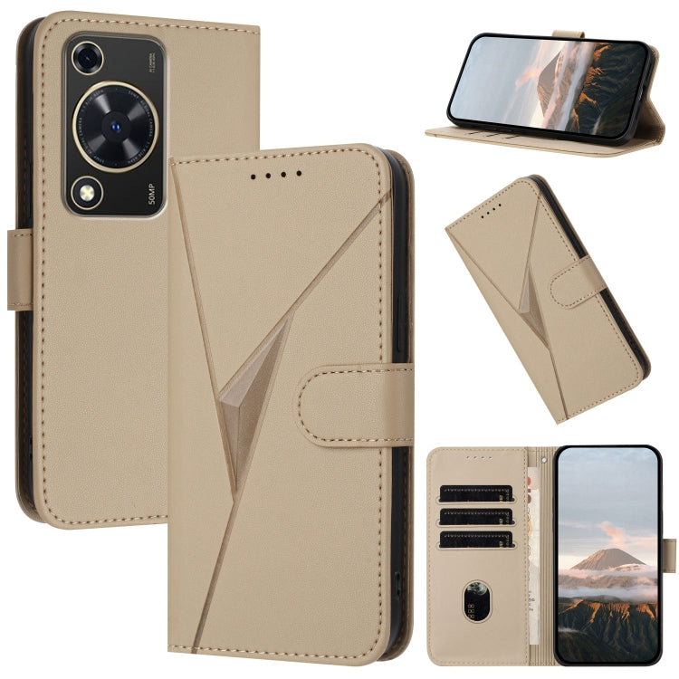 Funda de Cuero con Cierre de Hebilla y Diseño Triangular para Huawei Enjoy 70 (Dorada)