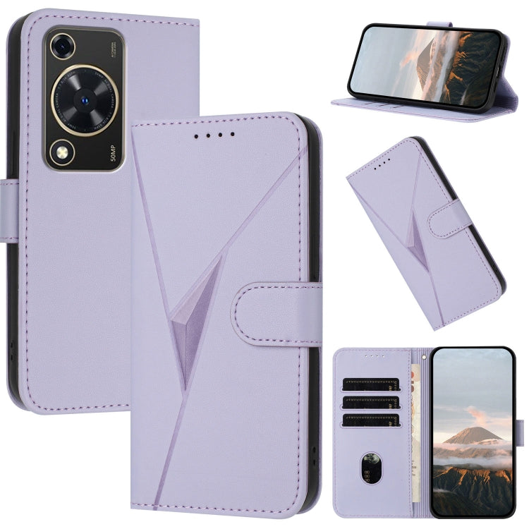 Funda de Cuero con Cierre de Hebilla y Diseño Triangular para Huawei Mate 60 (Morado Claro)