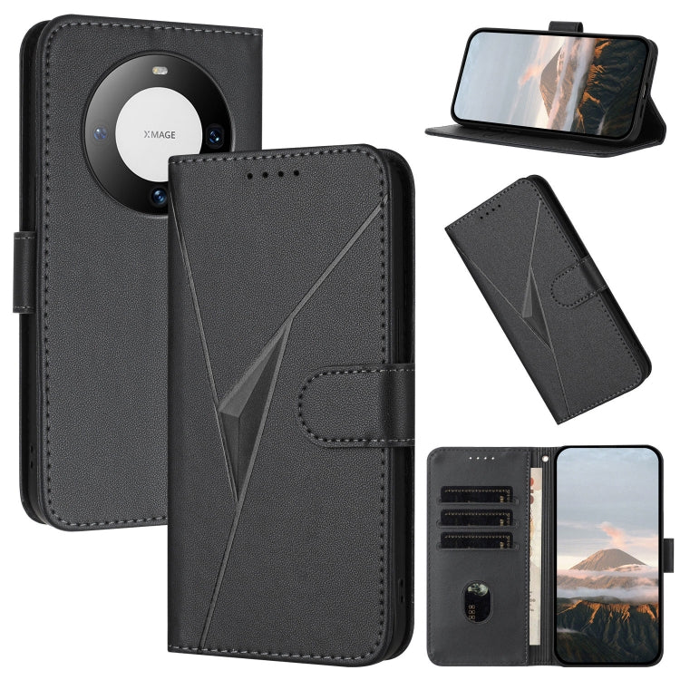 Funda de Cuero con Cierre de Hebilla y Diseño Triangular para Huawei Mate 60 (Negra)