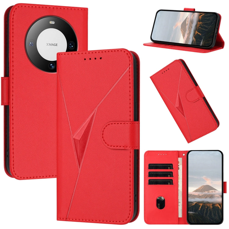 Funda de Cuero con Cierre de Hebilla y Diseño Triangular para Huawei Mate 60 Pro (Rojo)