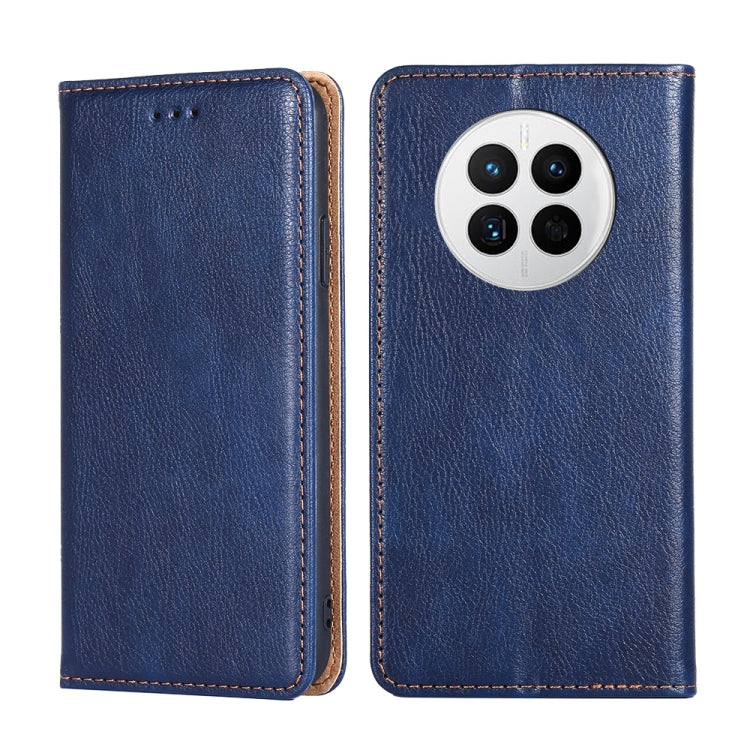 Estuche para Teléfono Huawei Mate 50 Cuero Magnético Color Sólido con Aceite Brillante (Azul)