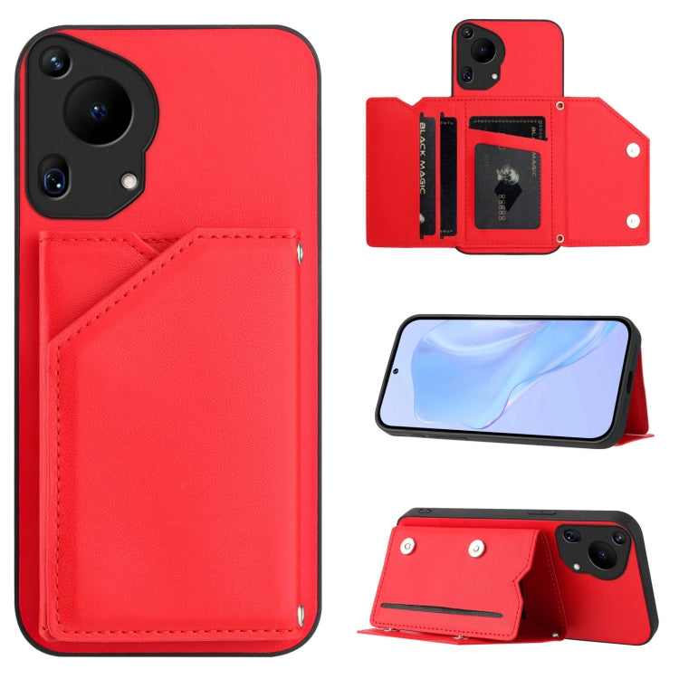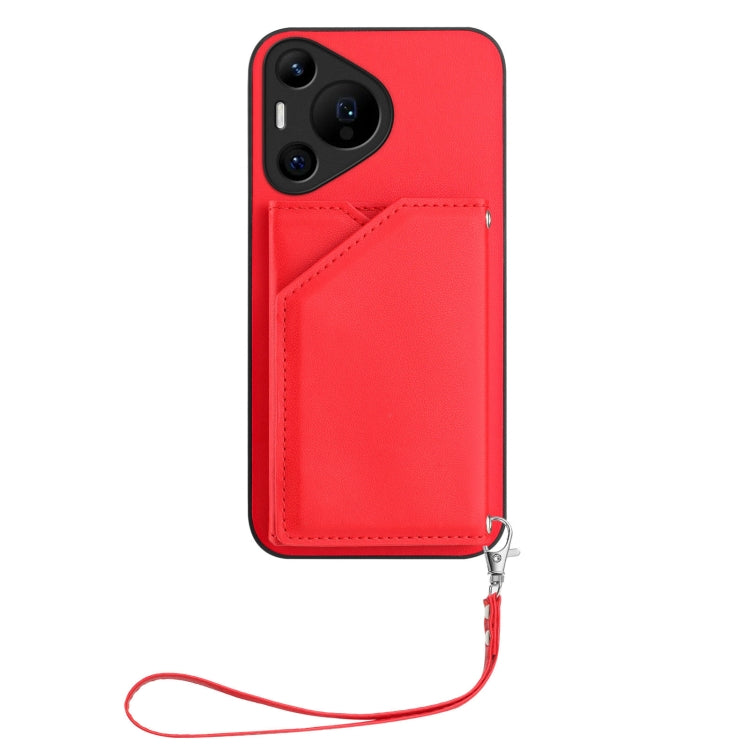 Funda para Teléfono Huawei Pura 70 Skin Feel con 4 Ranuras para Tarjetas y Correa (Rojo)