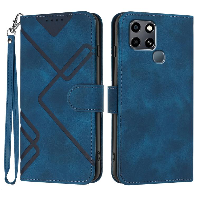 Funda de Cuero Infinix Hot 20 4G con Diseño de Líneas y Tacto Suave (Azul Real)