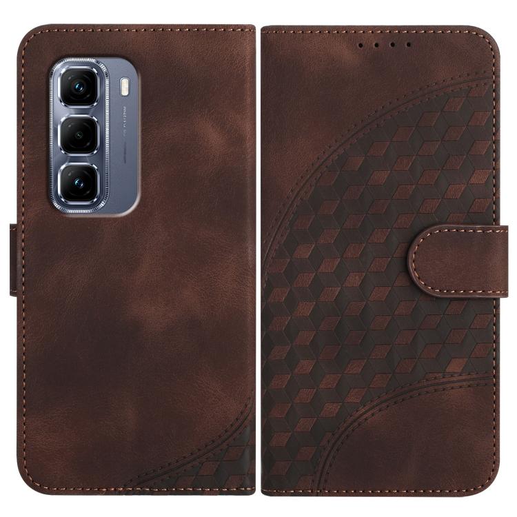 Funda de Cuero con Relieve de Cabeza de Elefante para Infinix Hot 50 Pro 4G con Cordón (Café)