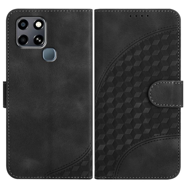 Funda de Cuero con Relieve Cabeza de Elefante para Infinix Smart 6 y Smart 6 HD con Cordón (Negro)