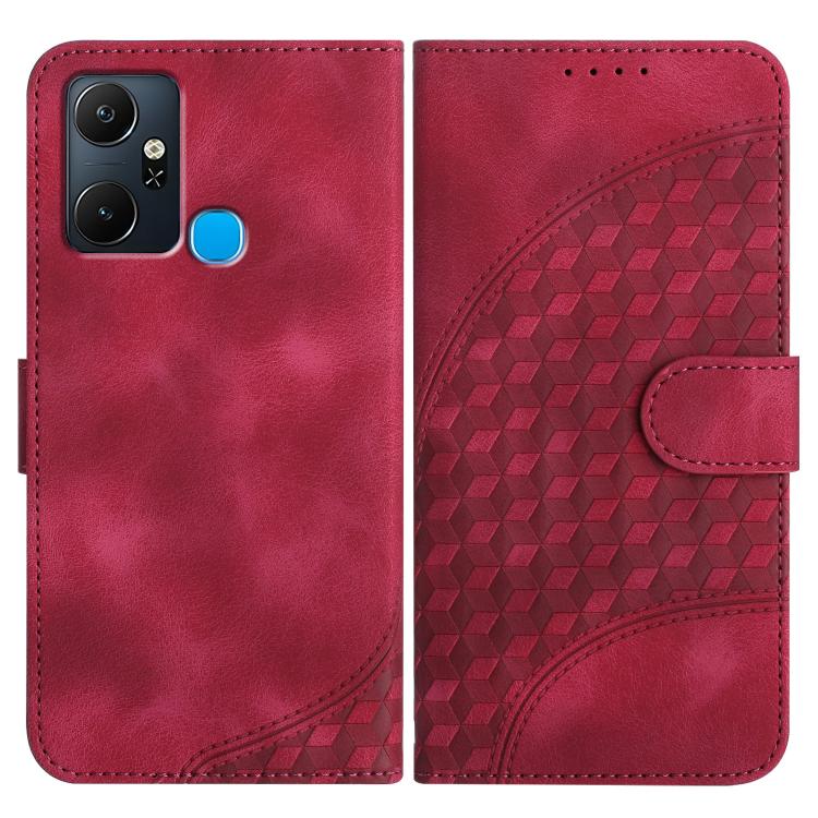 Funda de Cuero con Relieve de Cabeza de Elefante para Infinix Smart 6 Plus con Cordón (Rosa Rojo)
