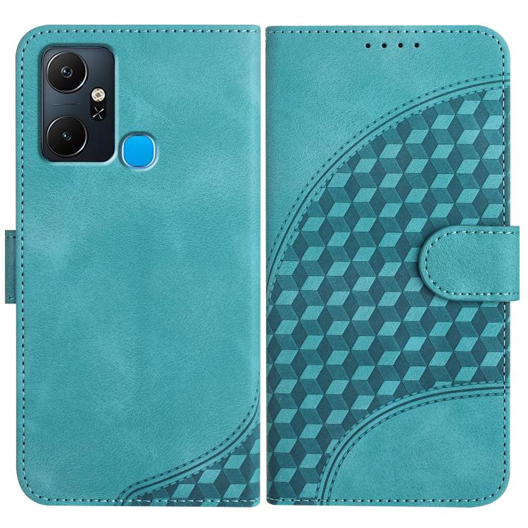 Funda Cuero con Relieve Cabeza de Elefante para Infinix Smart 6 Plus con Cordón (Azul Claro)
