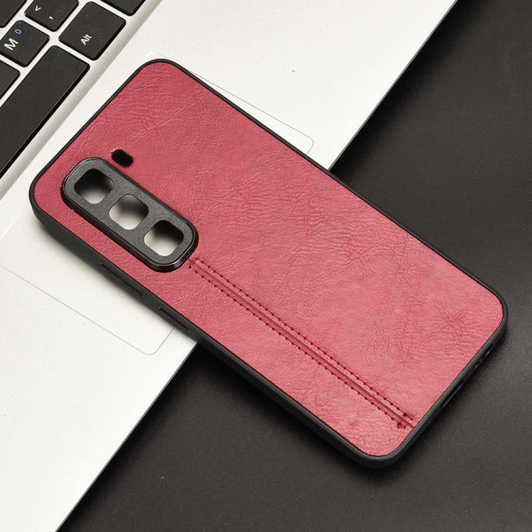 Funda de Cuero con Relieve y Costuras para Teléfono Infinix Hot 50I 4G (Rojo)