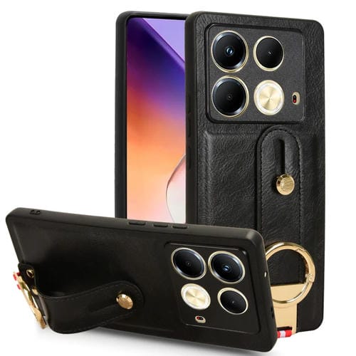 Funda Trasera de Cuero para Infinix Note 40 4G X6853 con Pulsera (Negro)