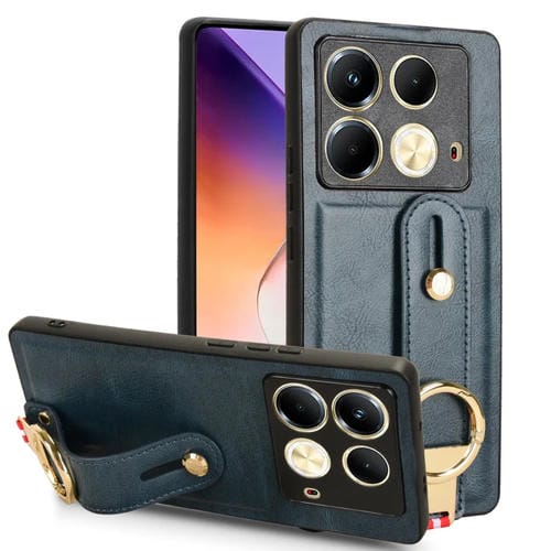 Funda Trasera de Cuero para Infinix Note 40 4G X6853 con Pulsera (Azul)