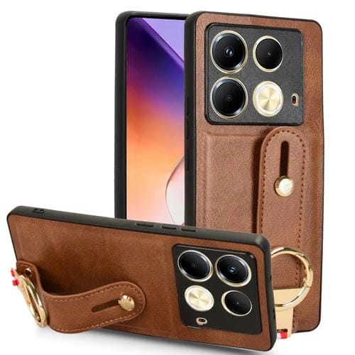 Funda Trasera de Cuero para Infinix Note 40 4G X6853 con Pulsera (Marrón)