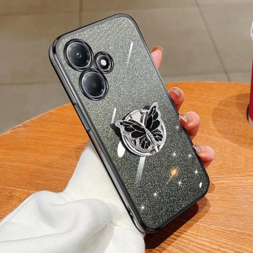 Funda TPU para Infinix Hot 12 Play con Soporte de Mariposa y Brillo Degradado (Negro)