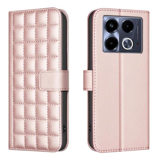 Funda de Cuero para Infinix Note 40 Pro 5G 4G con Textura Cuadrada (Oro Rosa)