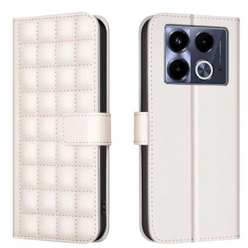 Funda de Cuero con Textura Cuadrada para Teléfono Infinix Note 40 4G (Beige)
