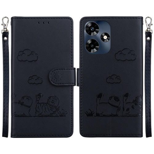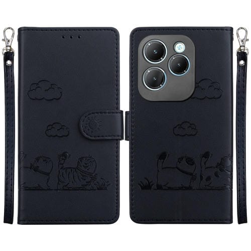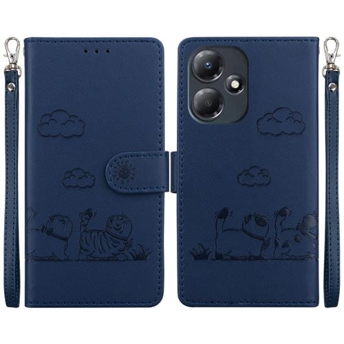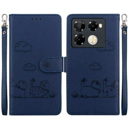 Funda de Cuero RFID para Infinix Note 30I con Diseño de Gatos (Azul)