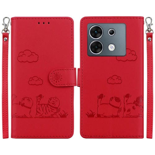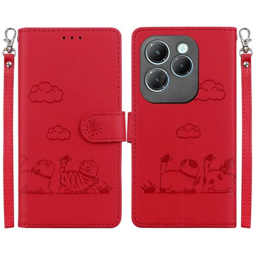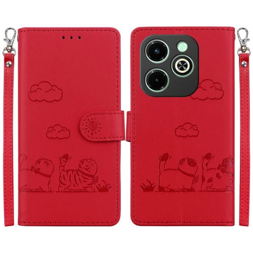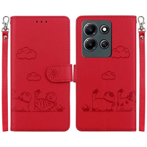 Funda de Cuero Rfid para Infinix Note 30I con Diseño de Gatos (Rojo)